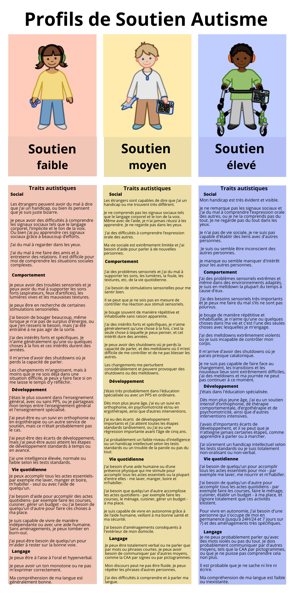 Infographies : les différents profils de soutien en autisme